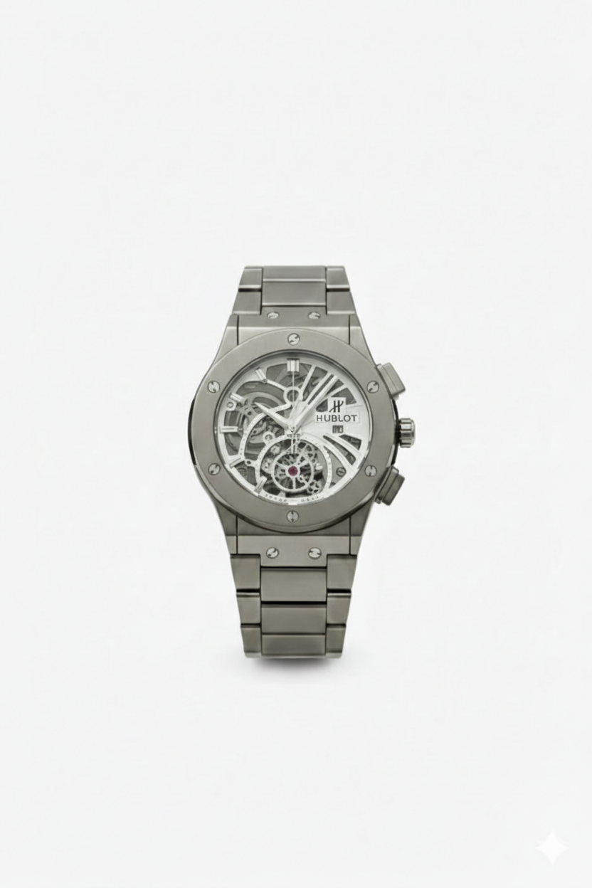 Whether you are looking for a luxury skeleton chronograph, a lightweight titanium business watch, or a statement designer timepiece, this Hublot model is an elite choice for the modern collector.