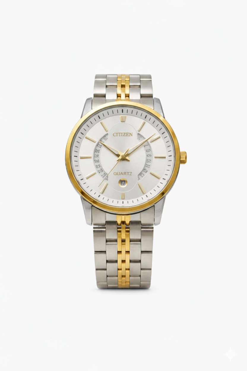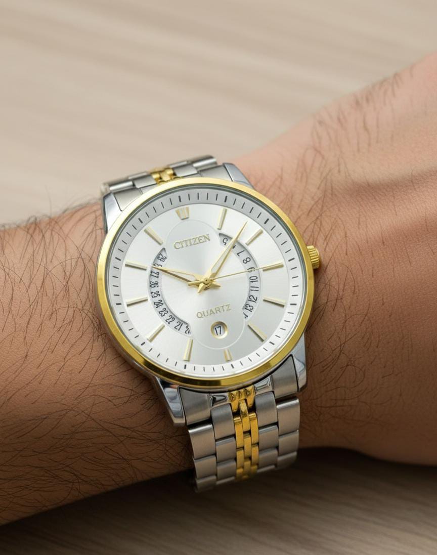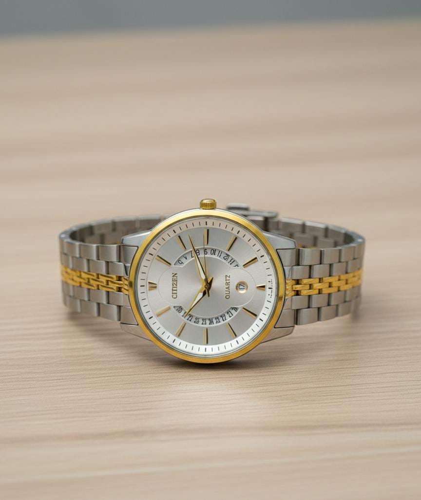 The Citizen Quartz “Multi-Date” Two-Tone Silver Dial is a premium timepiece engineered for individuals who value precision, heritage, and refined aesthetics. Featuring a unique “open-date” architecture, this watch showcases a creative semicircular date track across the dial, adding a sophisticated and high-end complication look to your wrist.