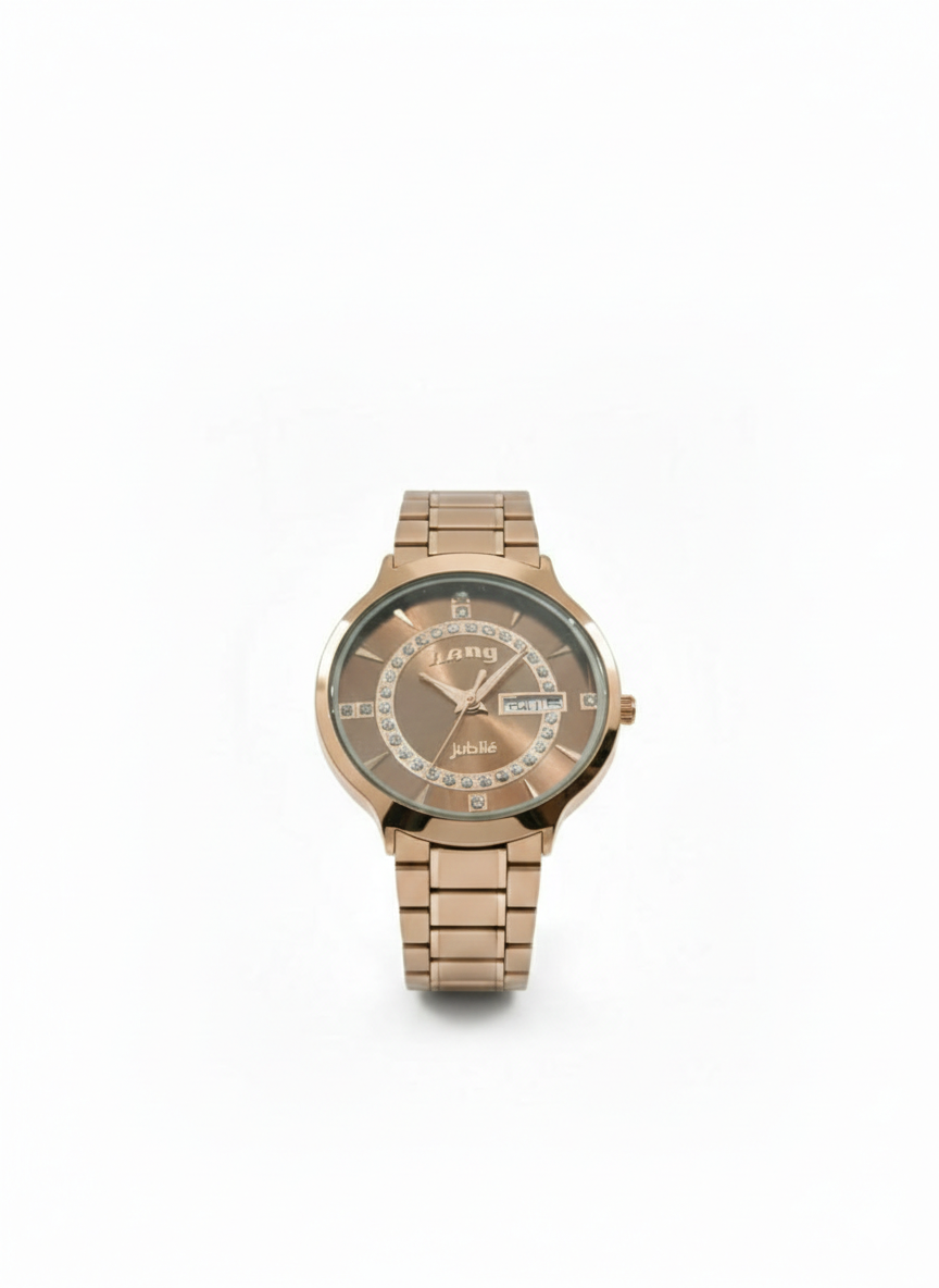 ​Crafted with a full rose gold-tone stainless steel case and a matching polished link bracelet, this watch offers a seamless, jewelry-like feel on the wrist. The minimalist day-date window and slender hands ensure that the focus remains on the stunning crystal centerpiece, making it an essential accessory for formal evenings and special celebrations.